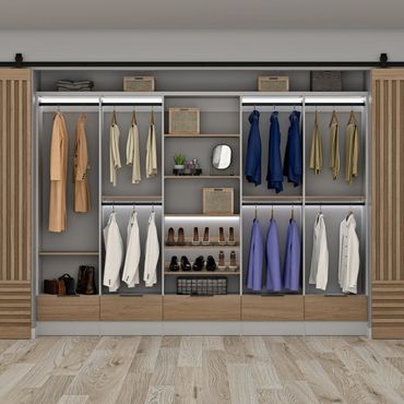 Accessorize with rods, drawers, shelves, doors, baskets, valet rods, and more.