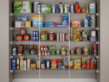 Use upright poles and linen or tight mesh shelving for optimum storage in pantries.